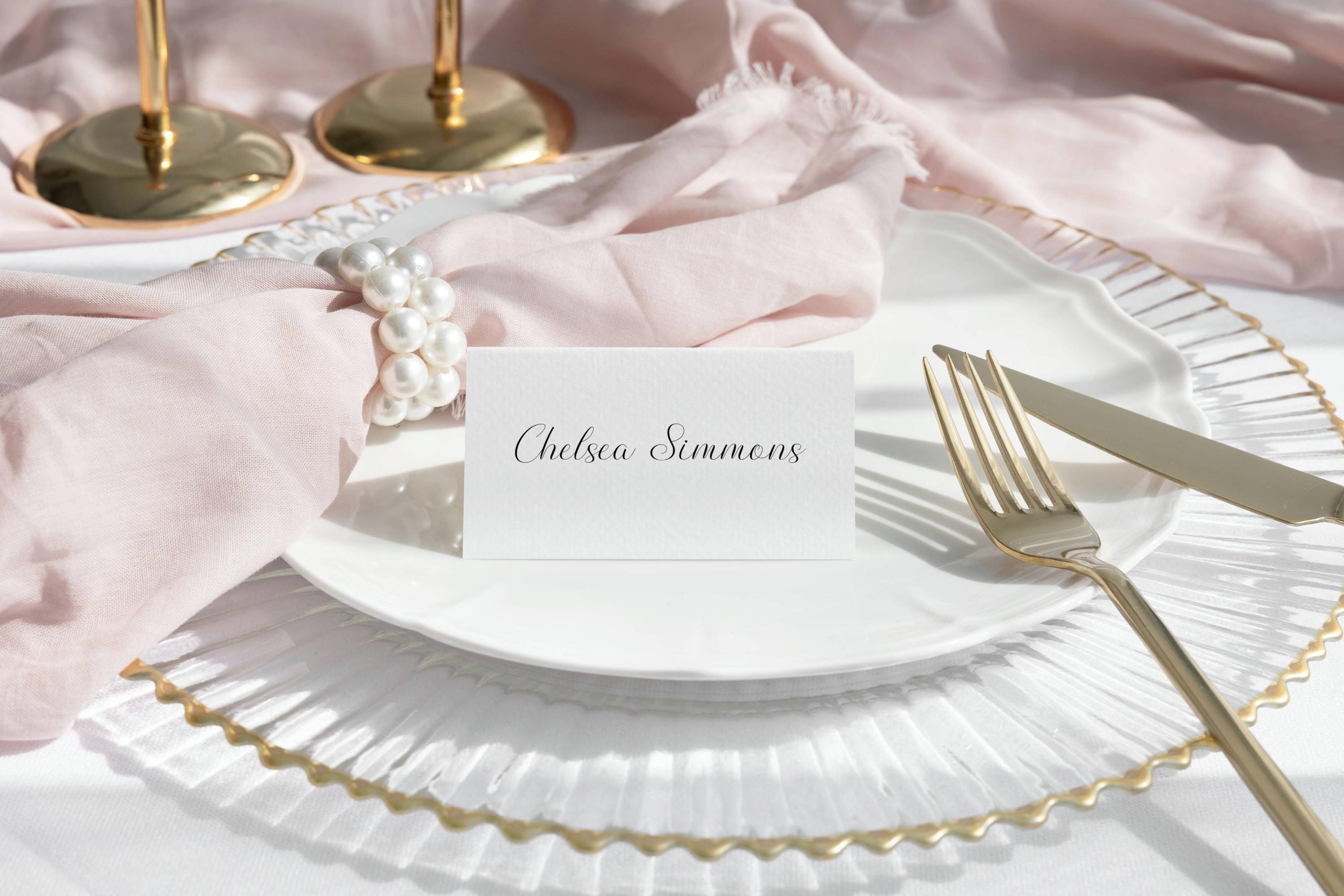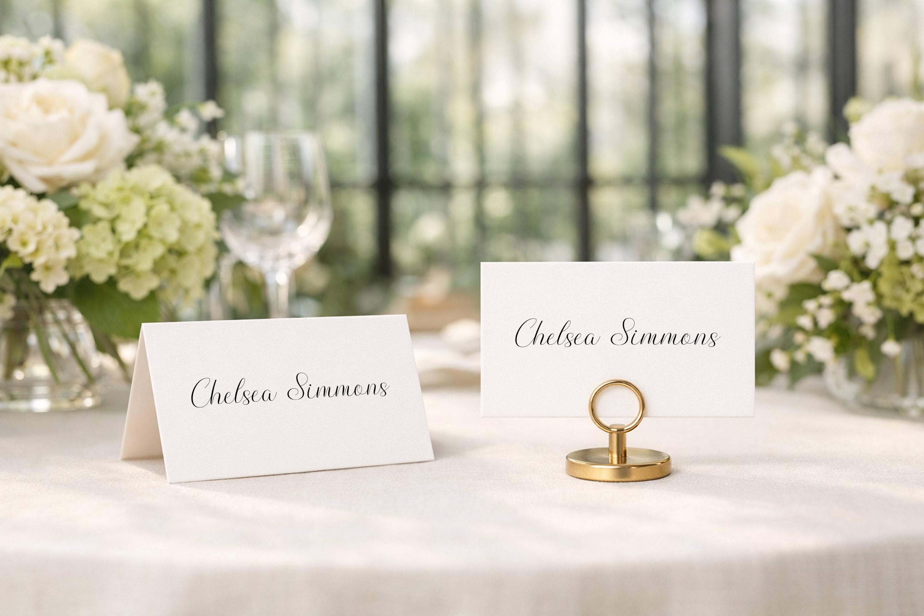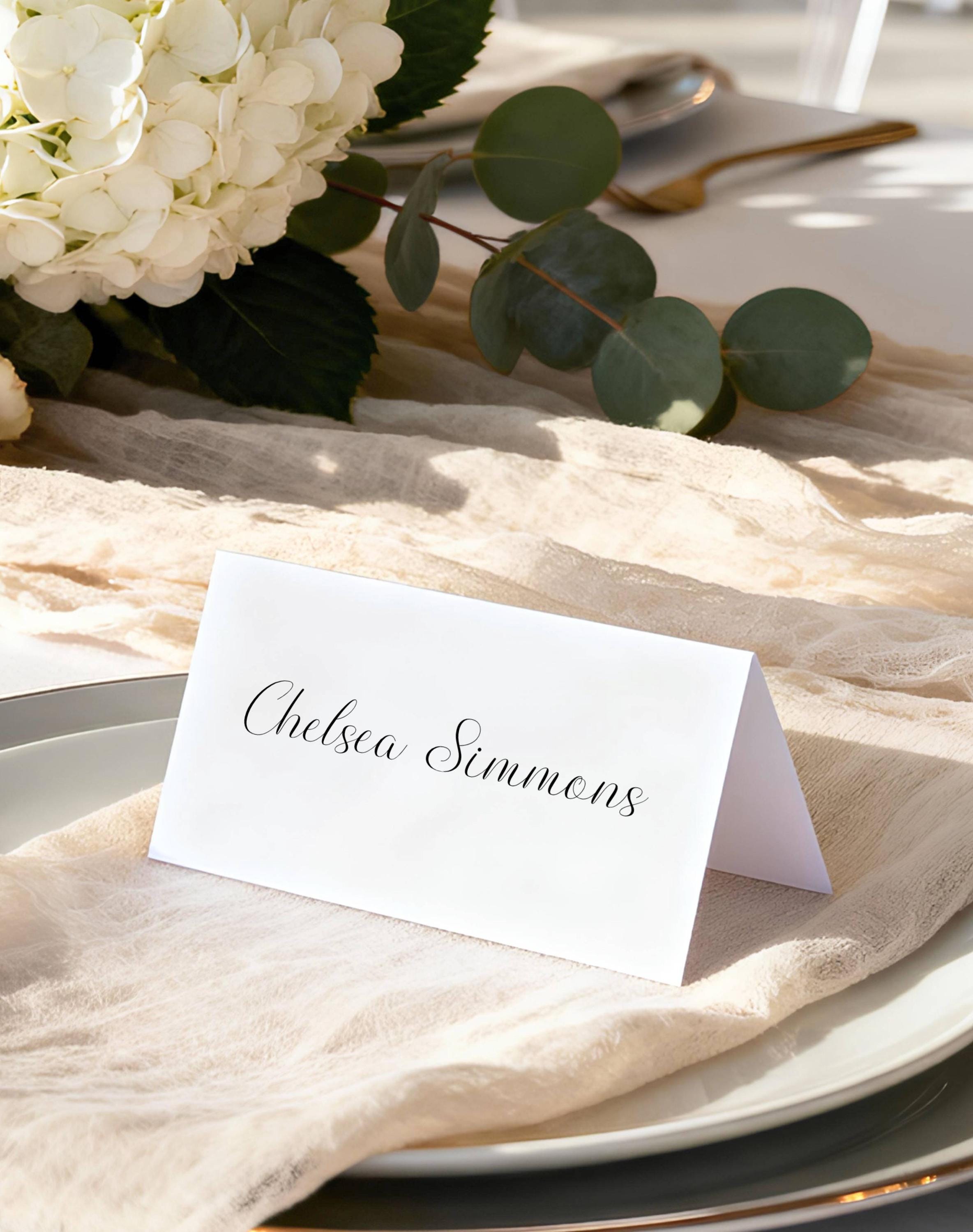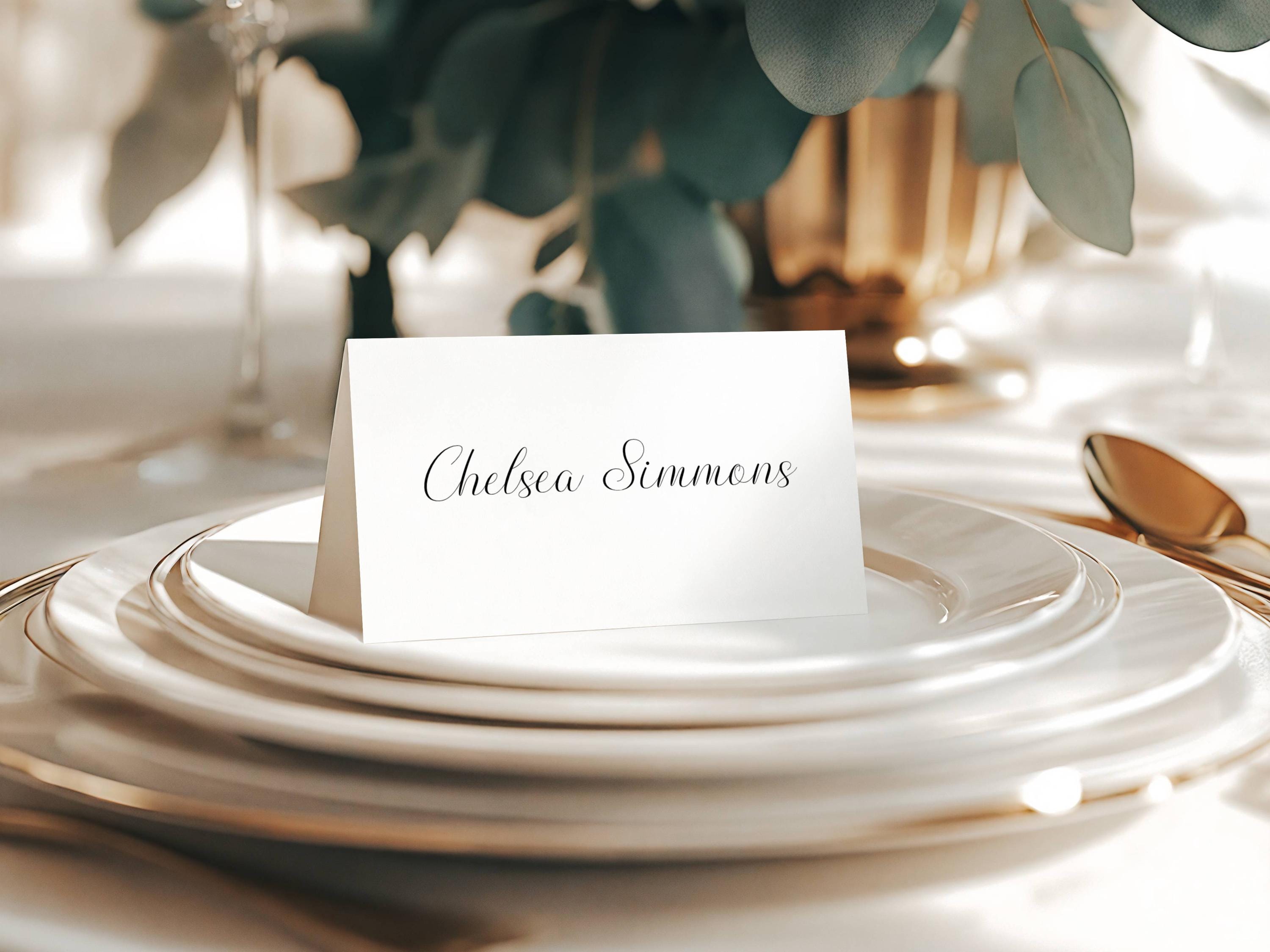 Minimalist Script Place Card Template. An Instant download digital file for you to edit in your web browser with Templett straight after your purchase. Once personalized you are ready to print.