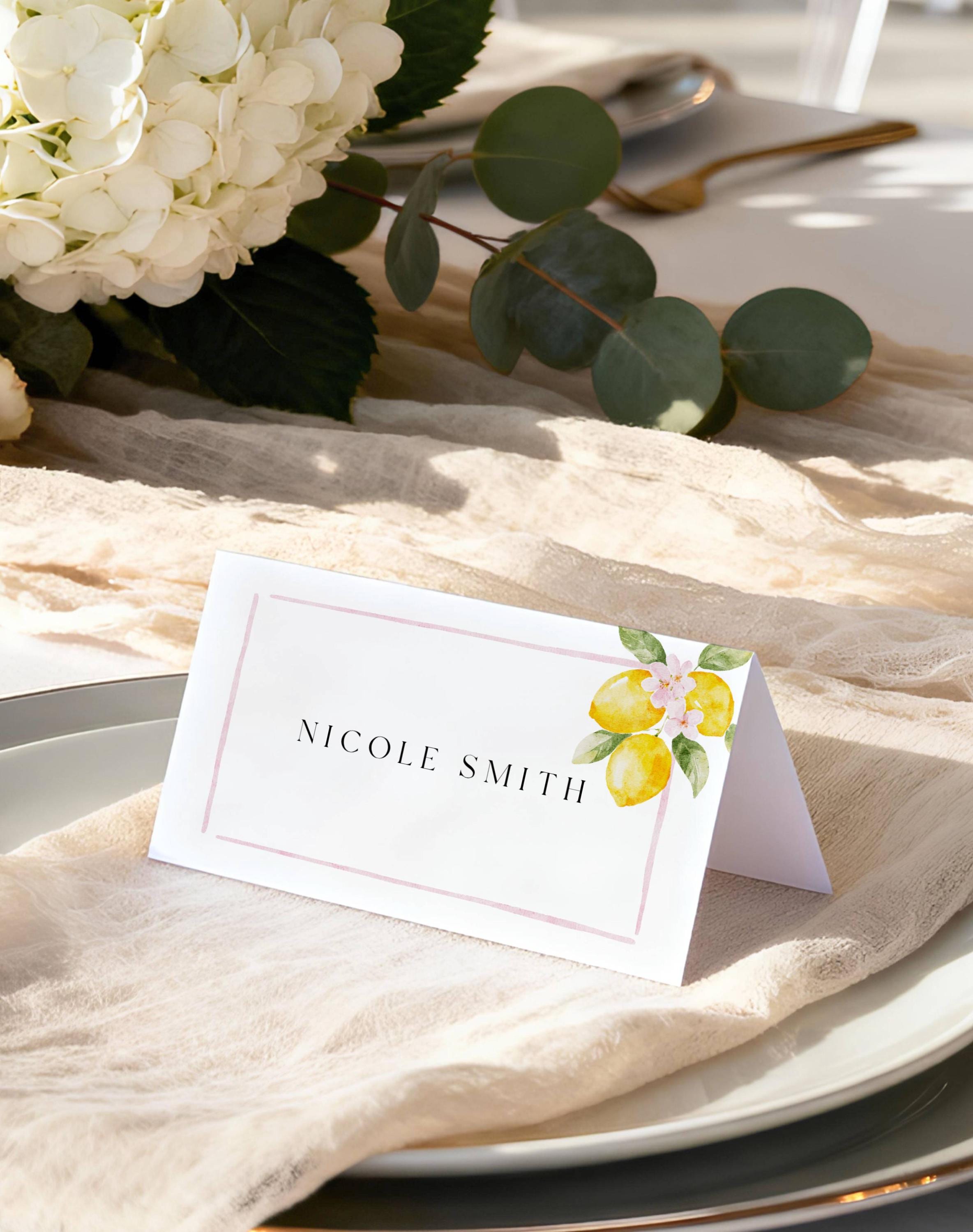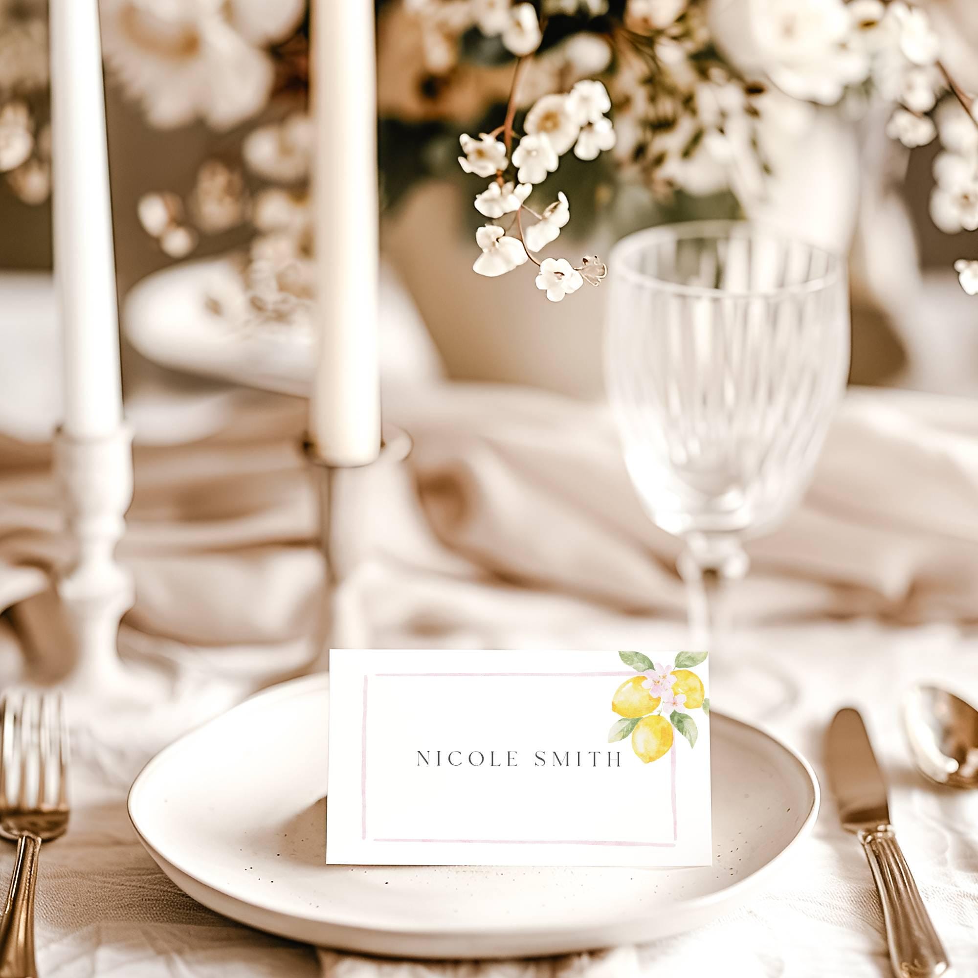 Lemons Place Card Template. An Instant download digital file for you to edit in your web browser with Templett straight after your purchase. Once personalized you are ready to print.
