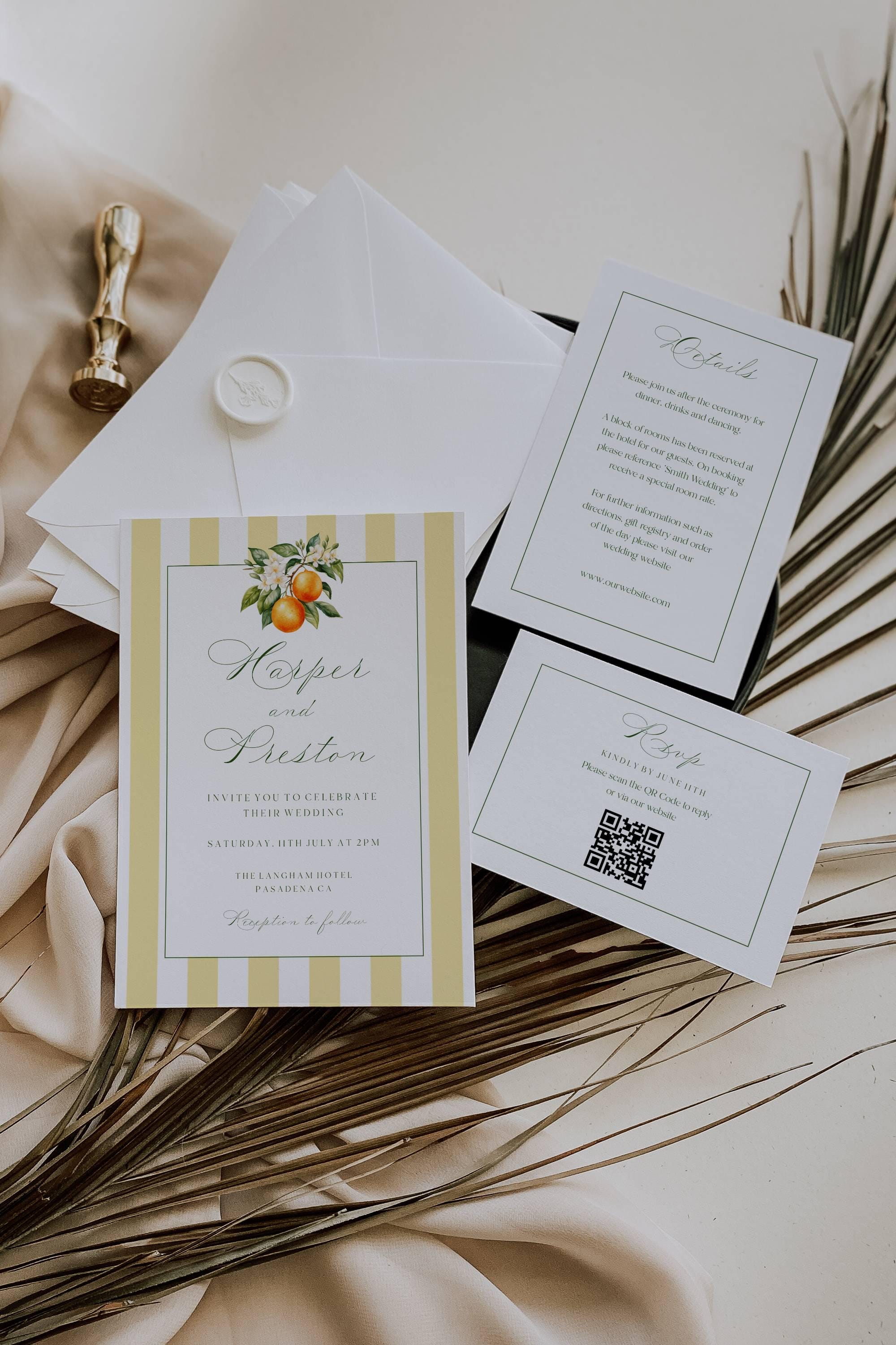 Orange Blossom Wedding Suite Template. An Instant download digital file for you to edit in your web browser with Templett straight after your purchase. Once personalized you are ready to print.