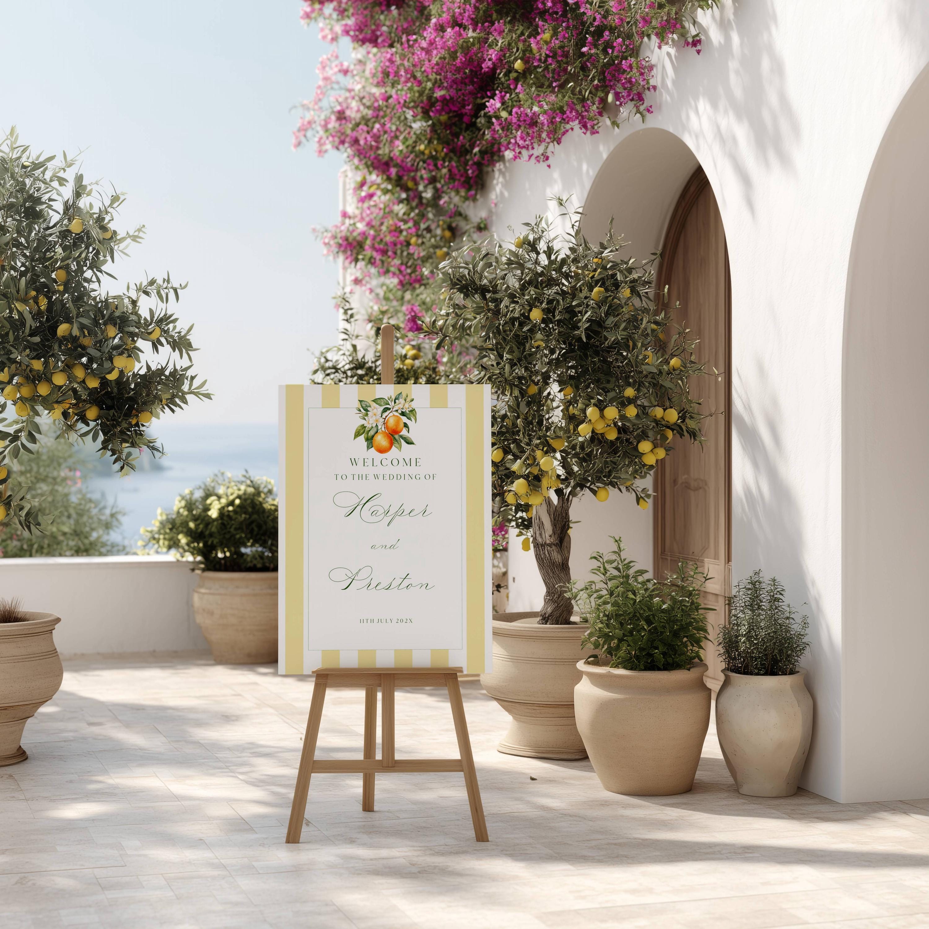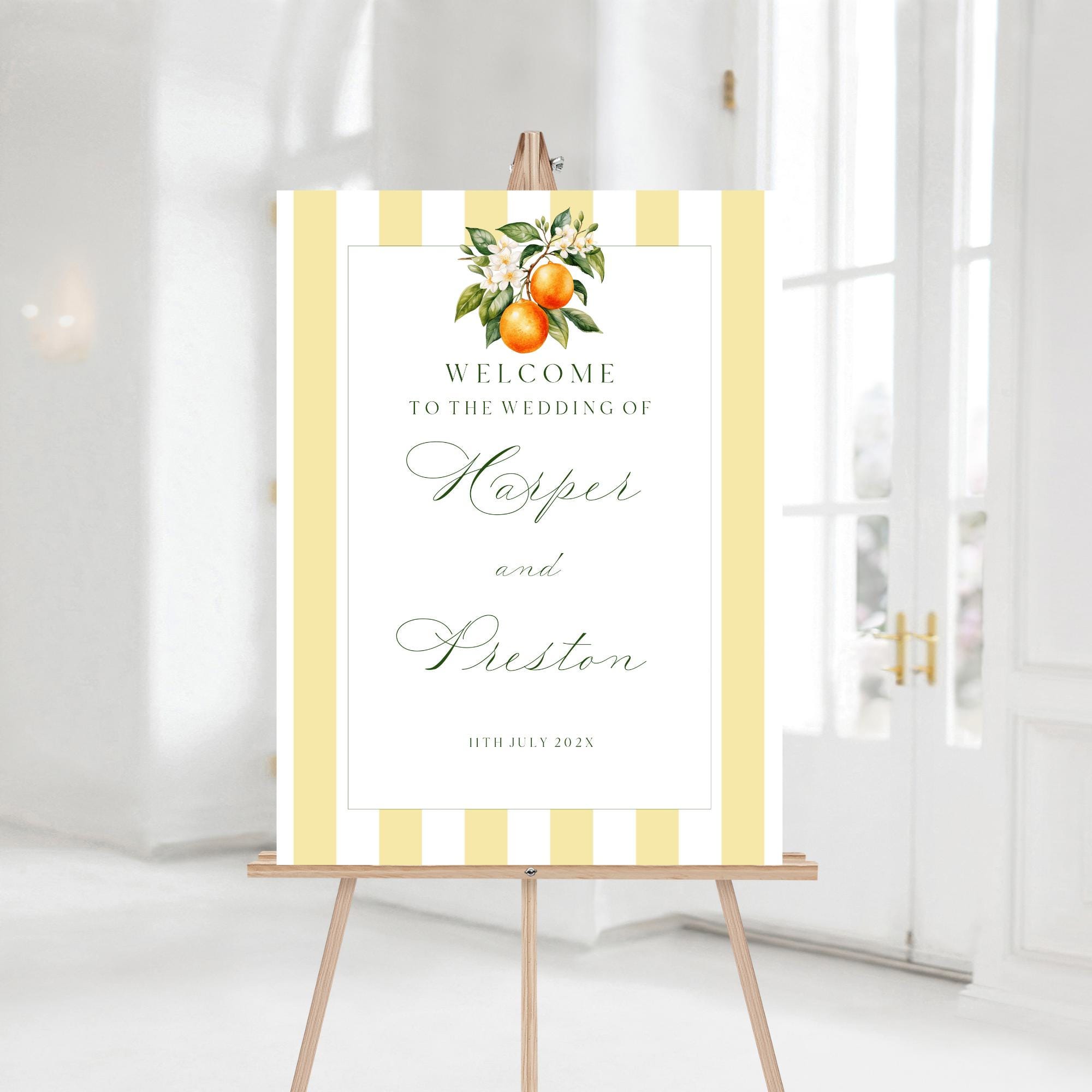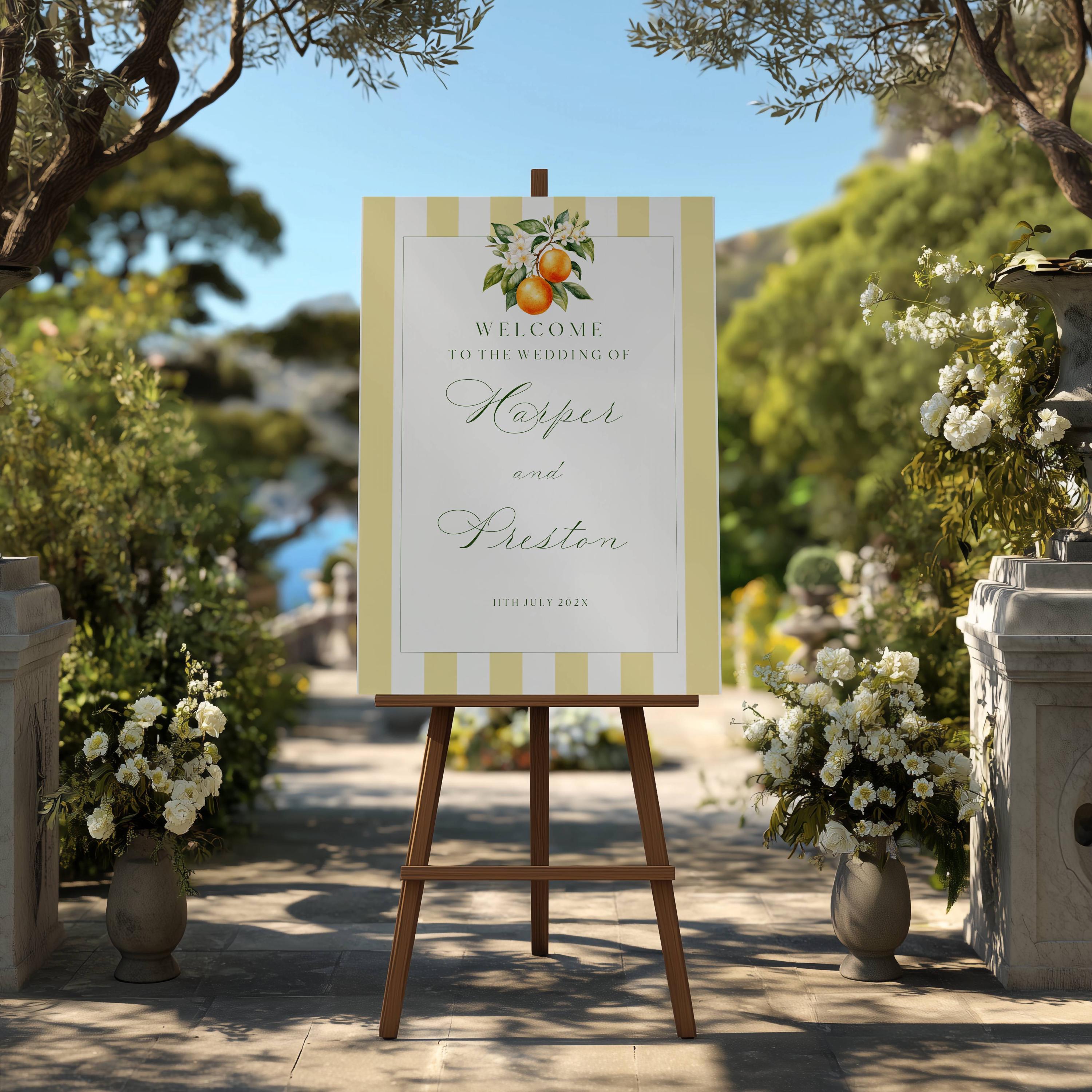 Orange Blossom Wedding Welcome Sign Template. An Instant download digital file for you to edit in your web browser with Templett straight after your purchase. Once personalized you are ready to print.