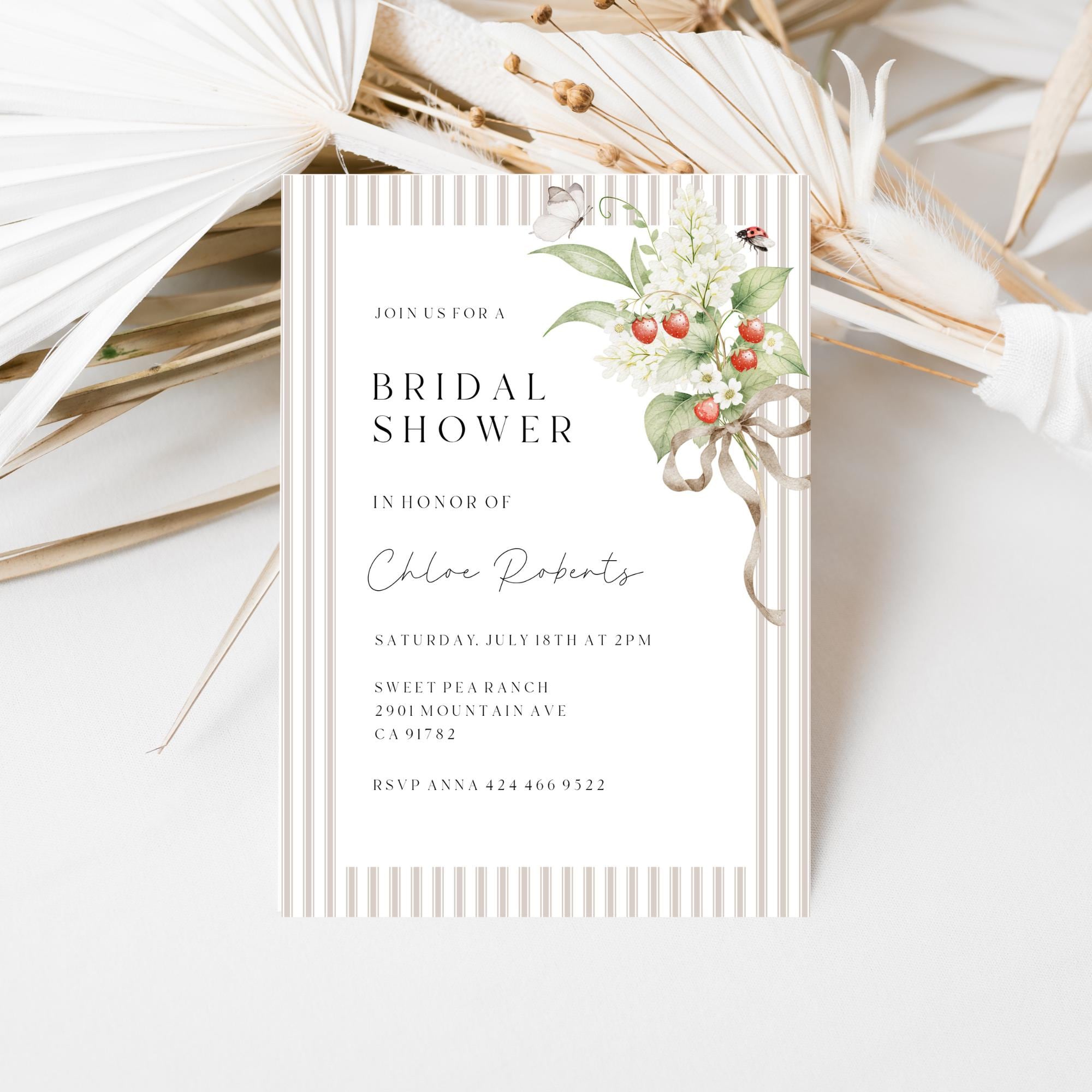 Wildflower Bridal Shower Invitation Template. An Instant download digital file for you to edit in your web browser with Templett straight after your purchase. Once personalized you are ready to print.