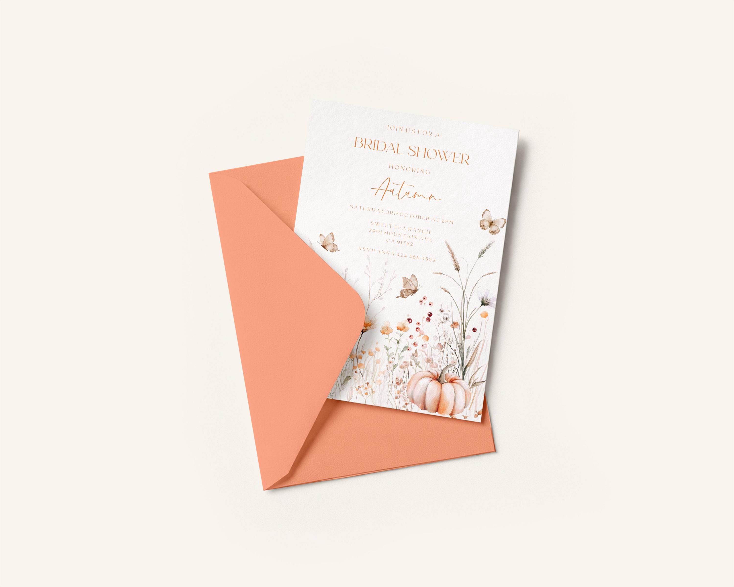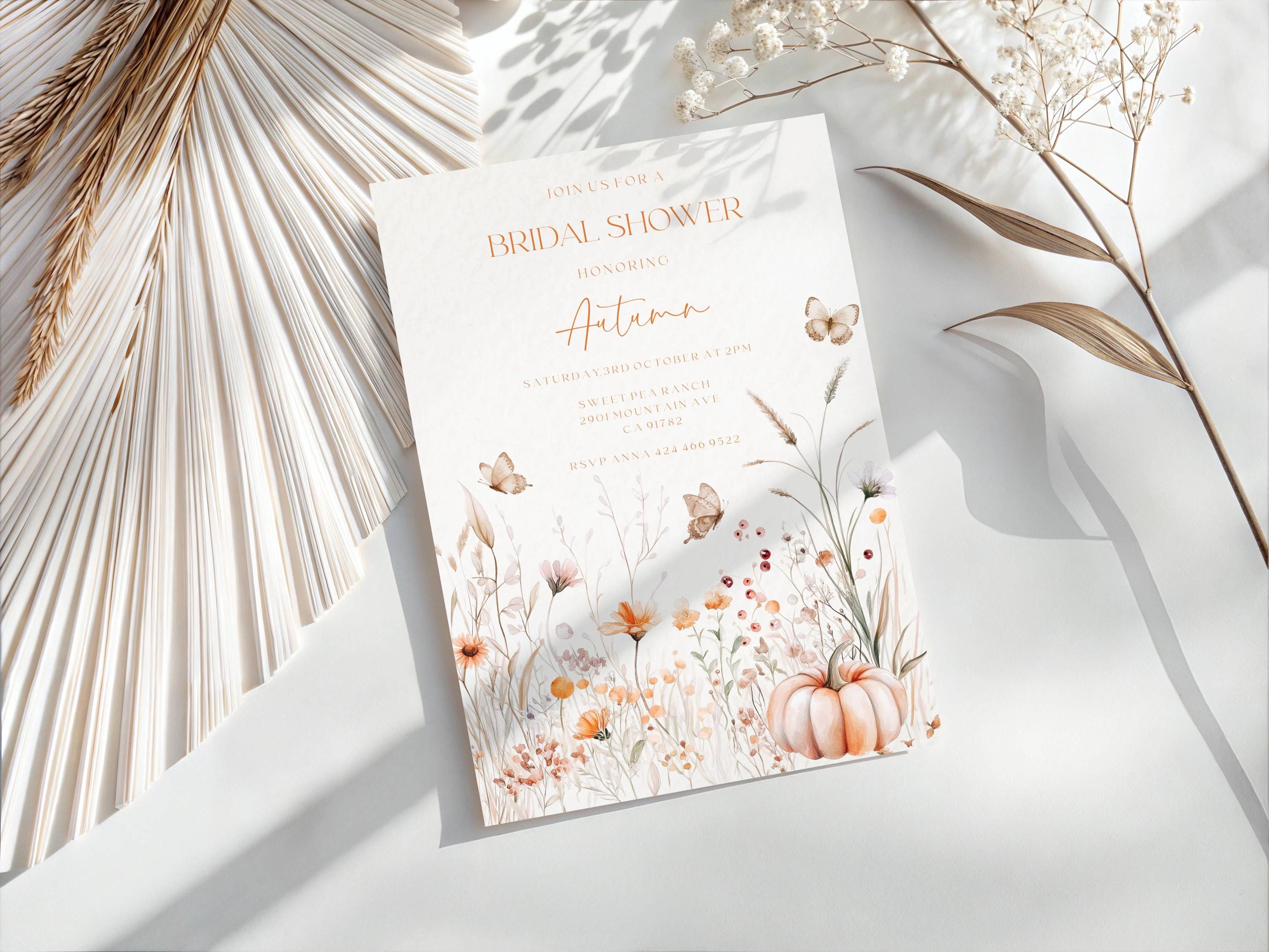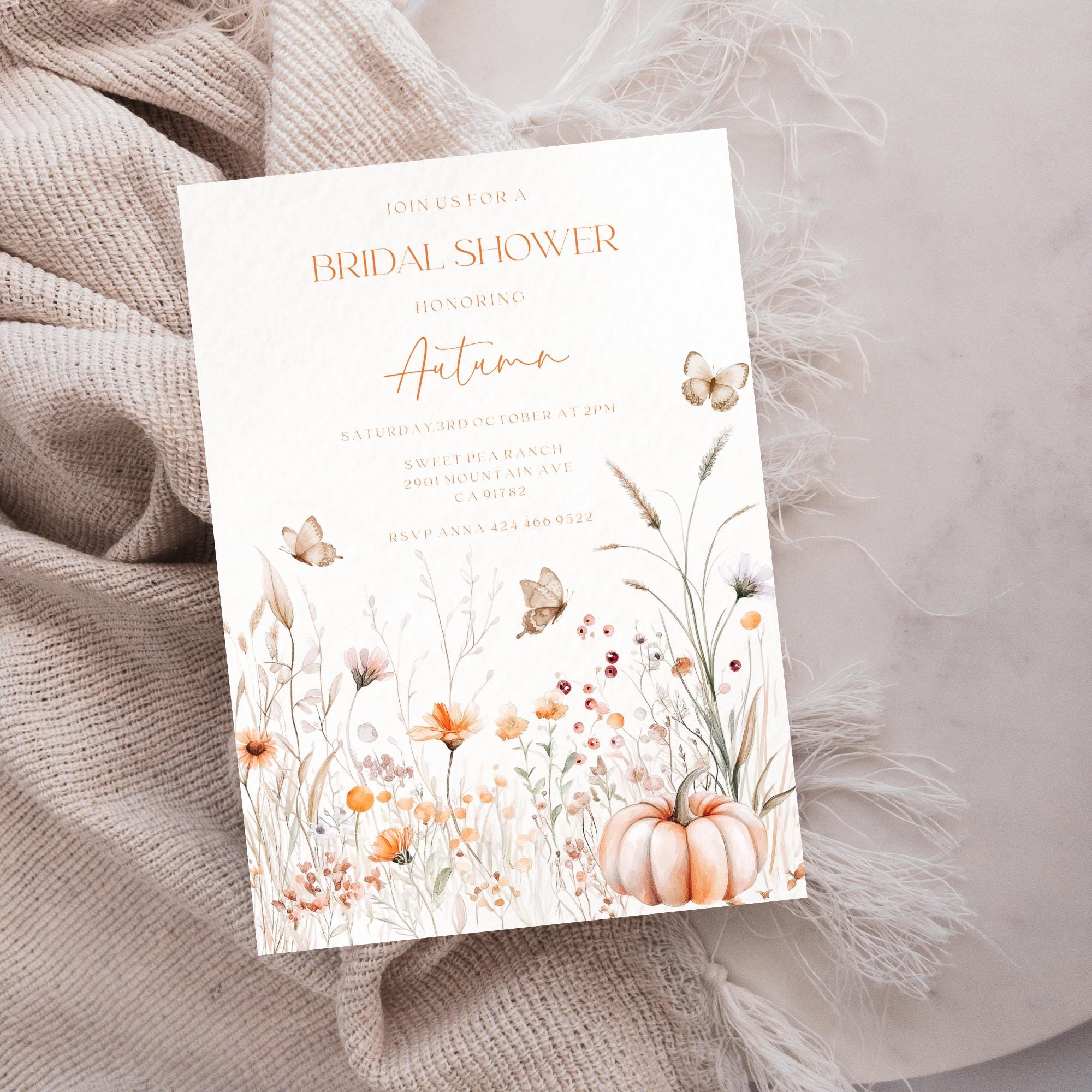 Fall Wildflower Bridal Shower Invitation Template. An Instant download digital file for you to edit in your web browser with Templett straight after your purchase. Once personalized you are ready to print.