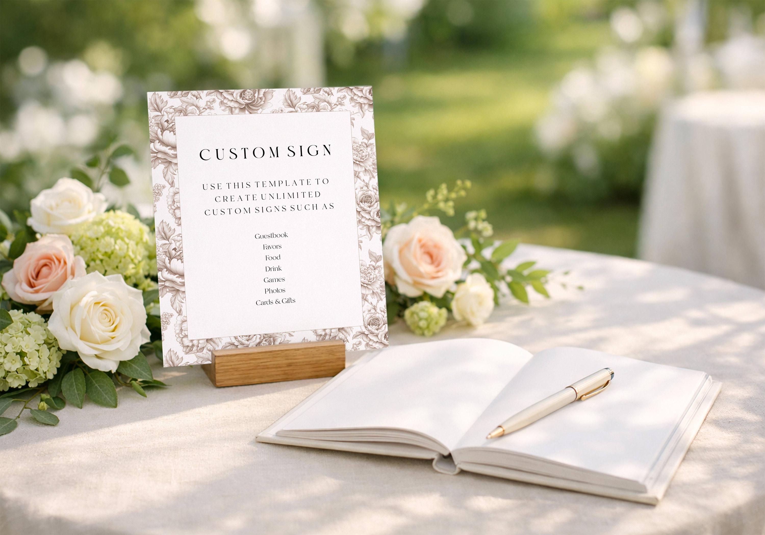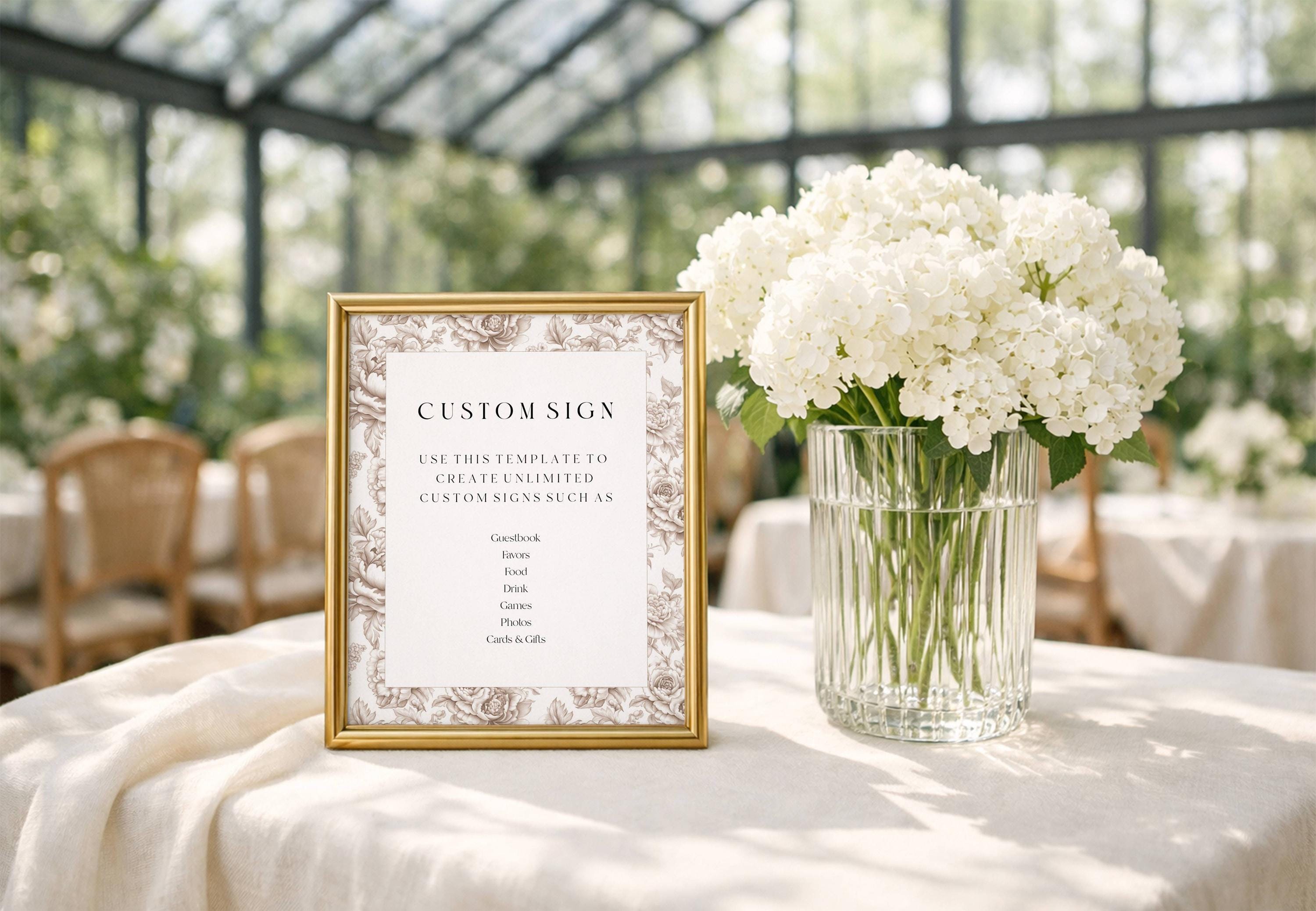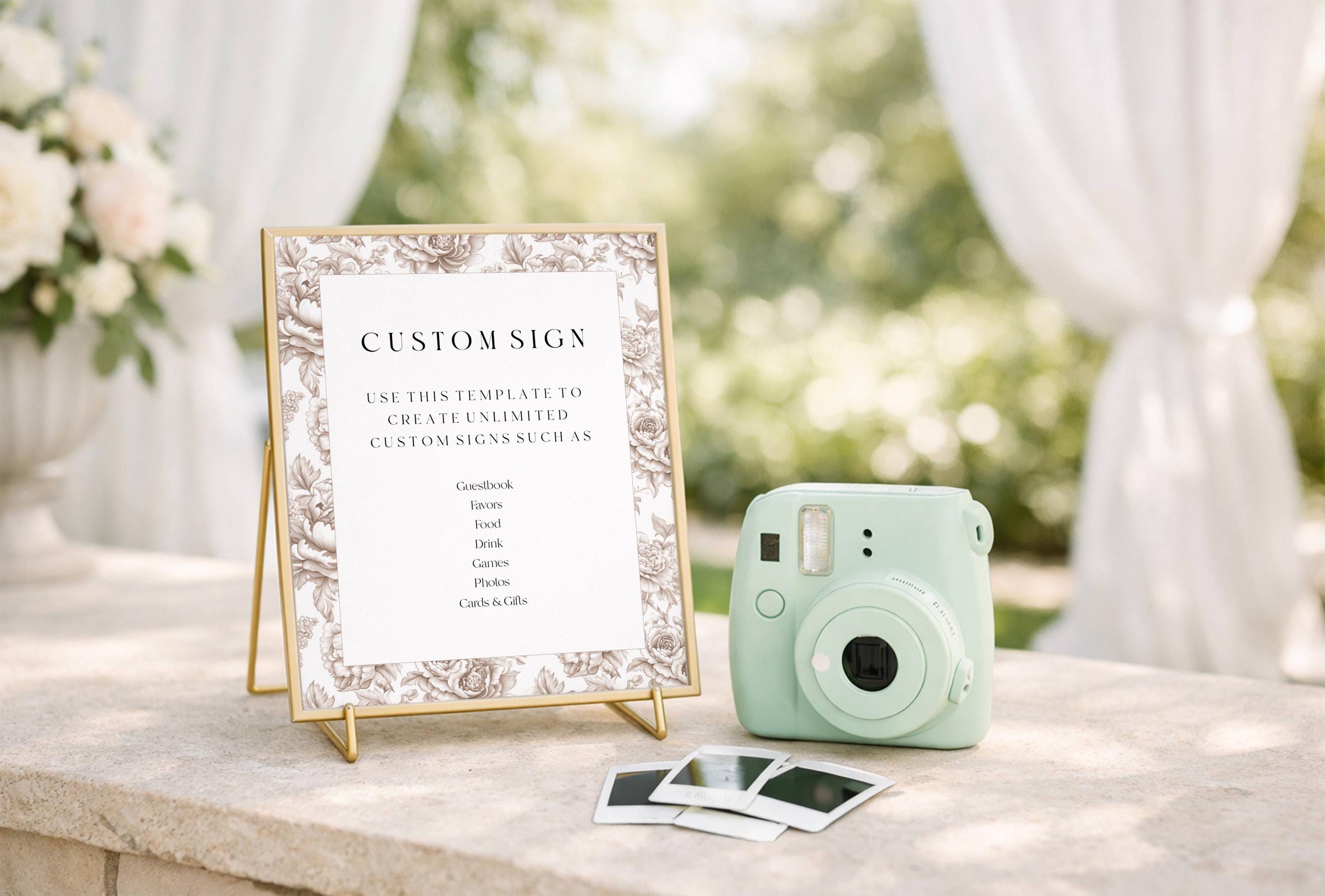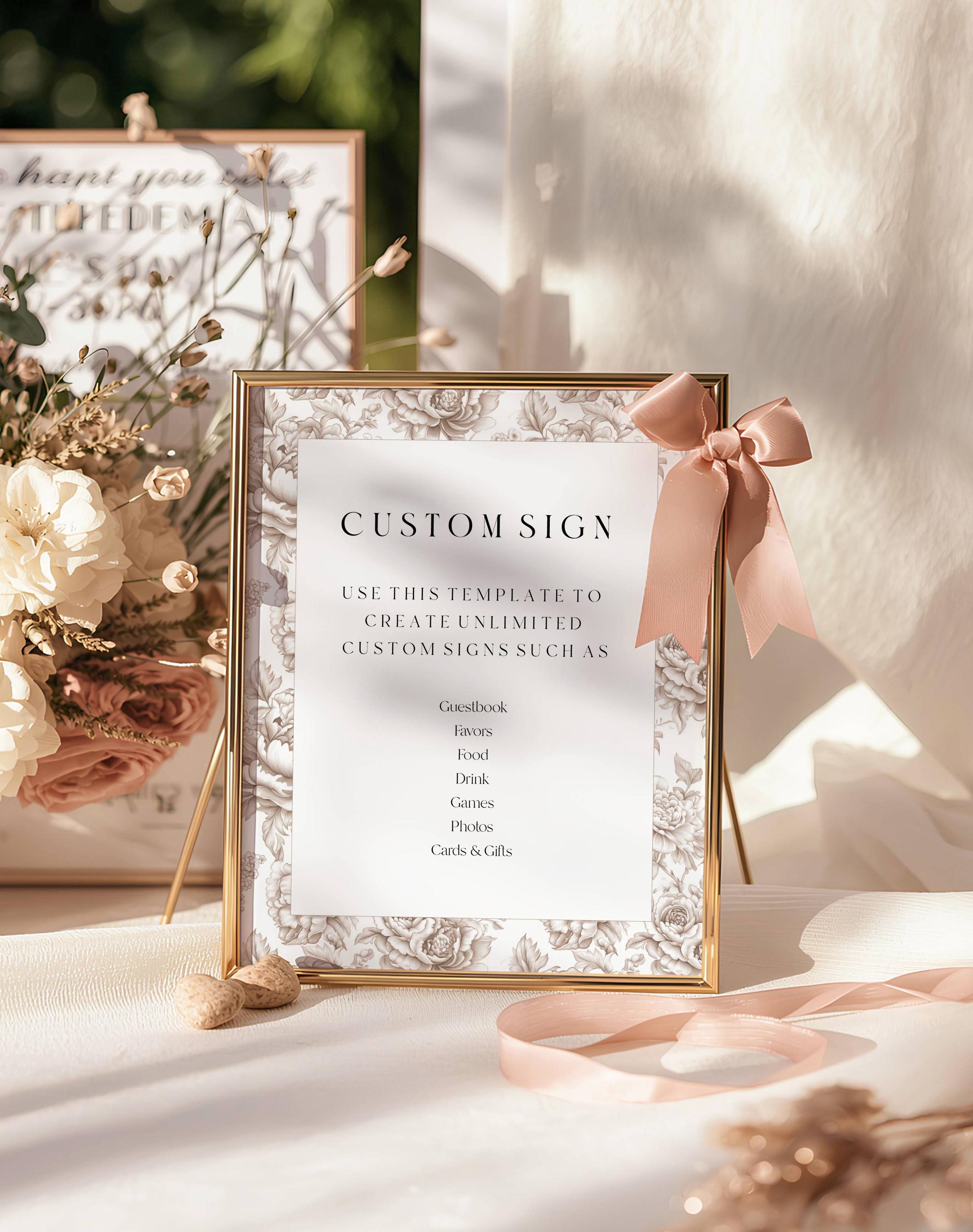 Neutral Toile Customizable Wedding Sign Template. An Instant download digital file for you to edit in your web browser with Templett straight after your purchase. Once personalized you are ready to print.